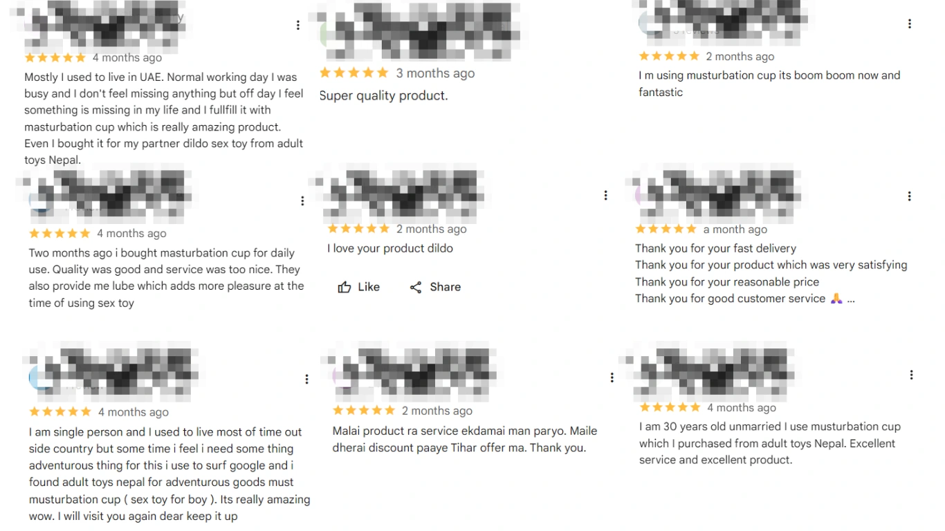 We are one of the most trusted online stores for adult sex toys in Nepal. Located in Peris Danda, Kathmandu, Adult Toys Nepal is a well-known online store offering a vast selection of adult products. The product range includes sex toys for boys (male), including masurbators, cock rings, doll sex toys, and penis sleeves for penis extension, sex toys for girls (female), including dildos, vibrators, and anal plugs, lingerie, condoms and lubes. Our priority is to ensure quality, customer satisfaction, and customer privacy through discreet packaging, without disclosing customer information, so that no one can identify what is inside the box. And our best part is that we make videos of different sex toys to let our customers know how to use, how to clean, and store them for future use. On Google, Adult Toys Nepal is rated 4.7 out of 5 by more than 81 customers.